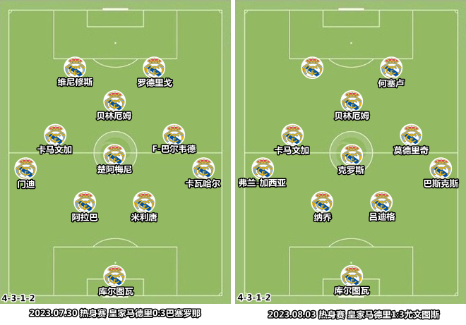 從安切洛蒂在熱身賽期間的用兵可以看出,貝林厄姆和卡馬文加的位置非常穩固,正值當打之年的F-巴爾韋德出場時間也必然得到保證,楚阿梅尼又處于亟待漲球的關鍵時期,充滿朝氣的中場組合需要老將(莫德里奇&克羅斯)壓陣……這些要素的集合,意味著即便補充了之前缺失的B2B中場,自“五年四冠”時期以來形成的中場同質化問題并沒有得到解決。