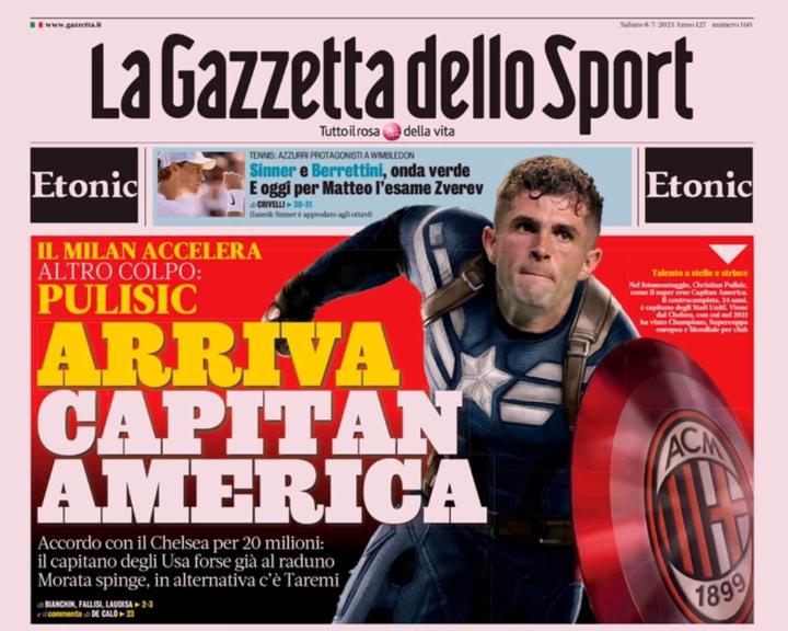 由于每筆簽約的成本大致相同,因此沒有人會像一年前的夏爾-德凱特拉雷那樣被高額的身價標簽所拖累——這讓他成為了人們期待下的避雷針。盡管如此,《米蘭體育報》的制圖團隊并沒有將其他米蘭簽下的球員當作美國隊長一樣來制作成頭版頭條,沒有哪筆簽約比普利希奇更吸引眼球了。