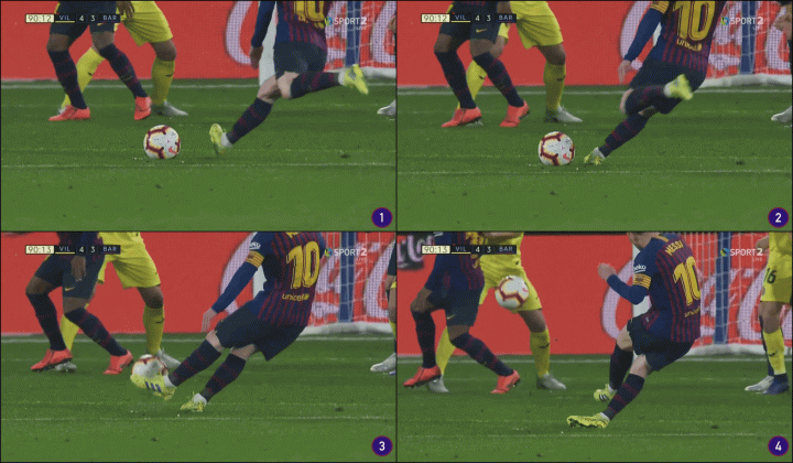 “當梅西觸球時,他的臀部會向右傾斜,”2020年,運動力學專家拉杰帕爾-布拉爾博士分析稱,“更舒服地伸展和擺動用來射門的左腿。(下圖圖1、圖2)”