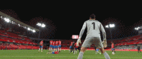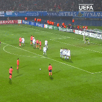 這記弧線有多妖異呢?首先從外側兜過人墻,似乎要飛出門框范圍,然后在門前急速回旋,最后從門將和門框的夾縫間落入球門。