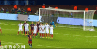 第一種變化,仍然是越過人墻,但是帶著急速的下墜和強烈的側旋。實際上,這就是距離更遠的勺子點球。