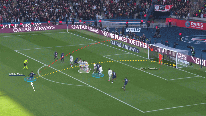 梅西身著巴黎圣日爾曼球員的首記穿云箭,則要等到加盟一年后,發生在2022年對陣尼斯的聯賽第9輪。