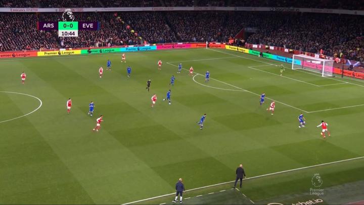 但情況遠不止如此。球權的循環,甚至阿爾特塔的阿森納的整個設置,都是這樣設計的。阿爾特塔嘗試為邊路球員創造這樣的情況,這樣他們就可以突破對手的防線。
