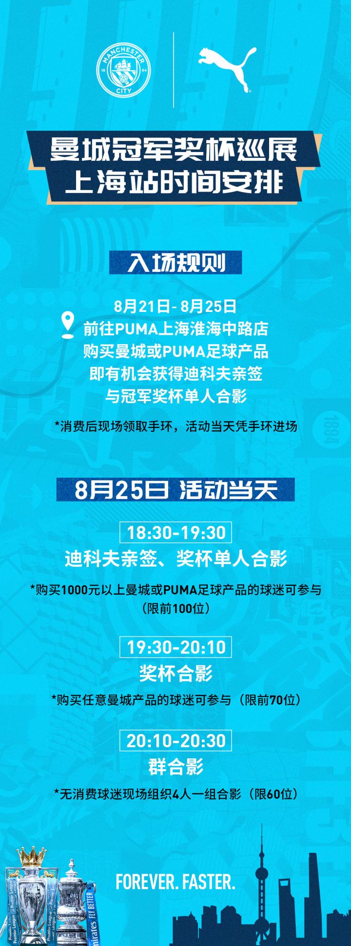 城迷朋友們一起行動起來吧!參觀曼城冠軍獎杯巡展,巡展為藍月衛冕三連助力!