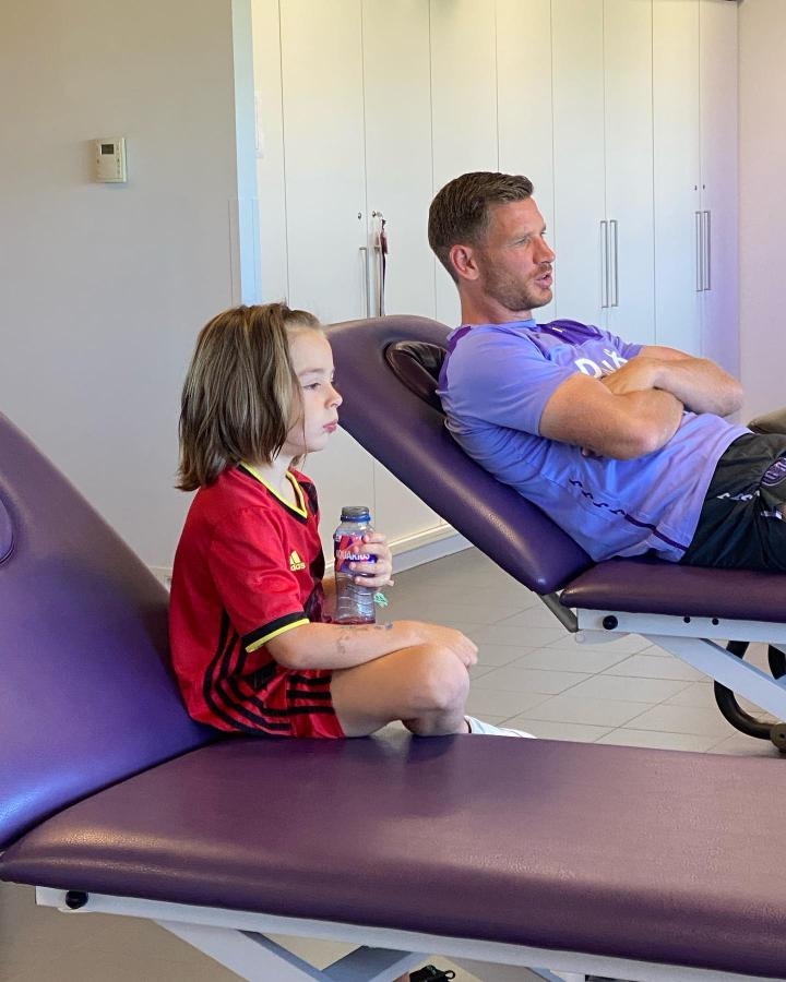 培養未來比利時女足?維爾通亨與女兒在健身房一同鍛煉