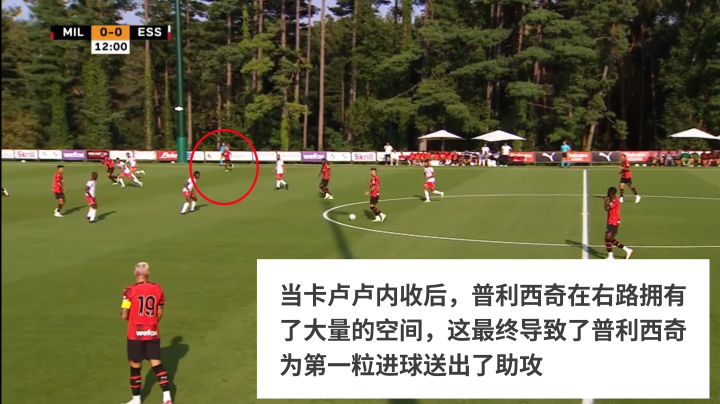 如果邊后衛來到中路,那么就為邊鋒騰出了空間。舉個例子,這是米蘭在對陣沙希爾星比賽中第一粒進球的原因。