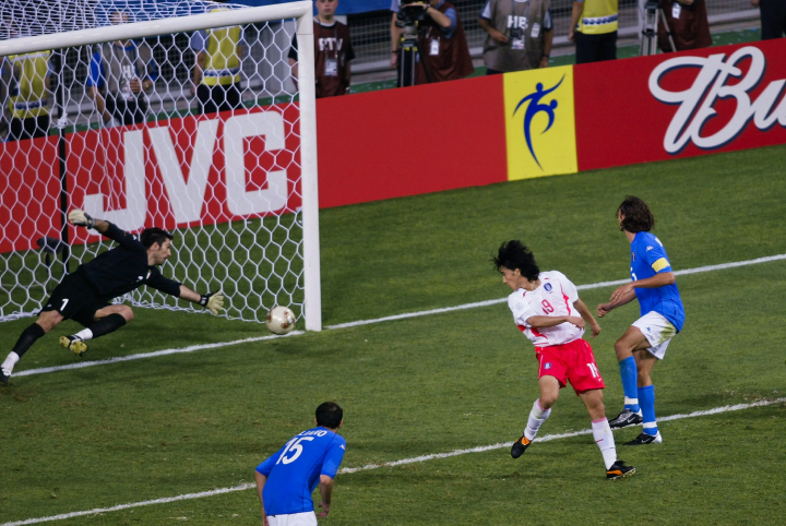 2002年的韓日世界杯上,意大利人與韓國隊狹路相逢時,盡管布馮撲出了安貞煥的點球,卻未能擋住對方的絕殺。雖然足夠出色,但賽后他卻被苛刻的球迷指責表現不佳。