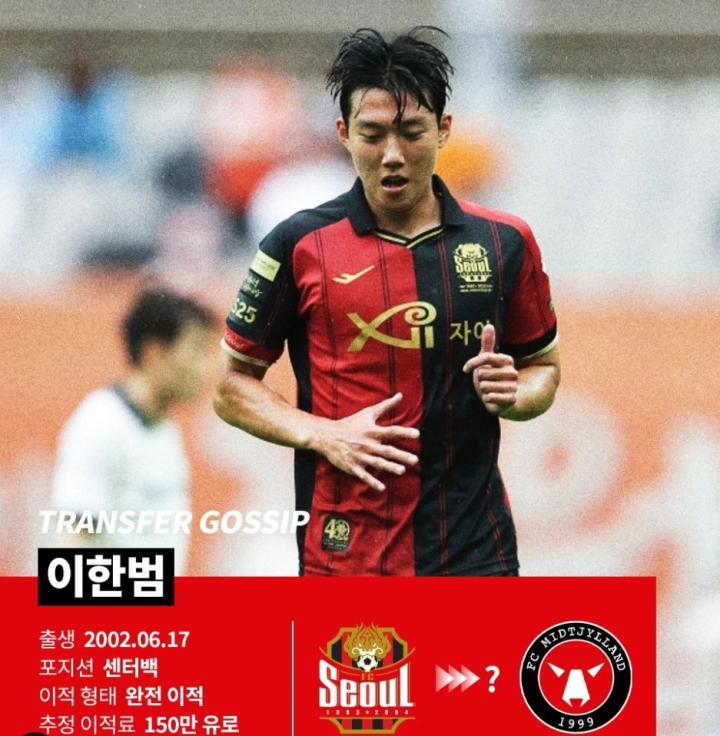 韓國21歲中后衛李韓汎接近加盟中日德蘭,韓國后衛預計轉會費150萬歐元。歲中