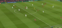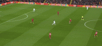 利物浦的技術能力在列強中并不突出,皇馬依然無法用高位逼搶占據主動。本澤馬和莫德里奇組成的第一道防線攔截能力不足,邊衛的選位(向前施壓效果不佳)總是出現問題,對手可以輕松地通過中場,將戰火燒到皇馬后衛面前。首回合,皇馬在0-2落后時并沒有急于搶攻,而是將大部隊退拉回后場形成451站位,拿下球權后嘗試縱深傳遞,用自己最擅長的方式扭轉局勢。