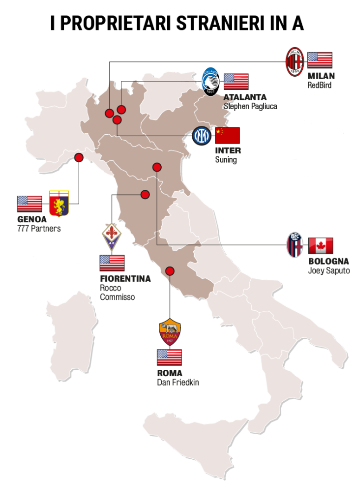 上圖為意甲聯賽中外資擁有的球隊
