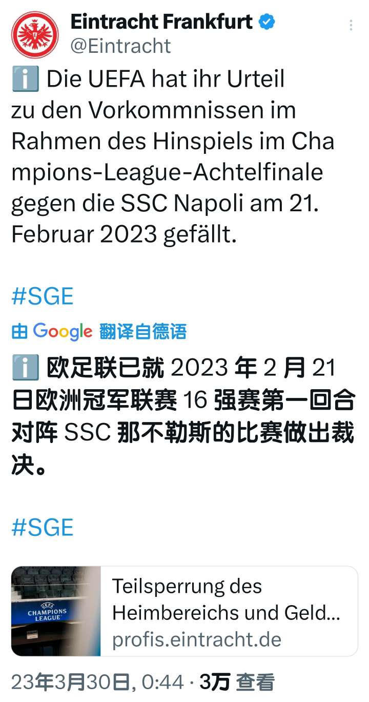 這次罰款7萬歐元+下一次歐戰主場關閉西北看臺下層,單處