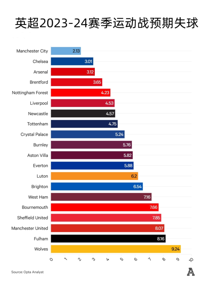 截止到目前(英超第五輪結束),切爾西的運動戰預期進球數排在英超第六,排在前面的有曼城、布萊頓、阿斯頓維拉、熱刺和利物浦。定位球方面,只有布倫特福德的定位球預期進球數高于切爾西。