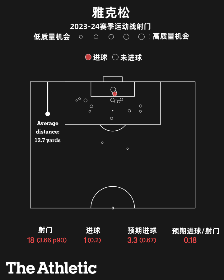 雅克松的問題不在于戰術和隊友的配合,而是他本人還沒有適應英超。在對陣諾丁漢森林的比賽中,雅克松錯失了一個絕佳機會,而且還錯過了一記質量極高的倒三角傳中。他的預期進球數(xG)達到了3.3個,但實際只有一球進賬。他還有很大的進步空間。