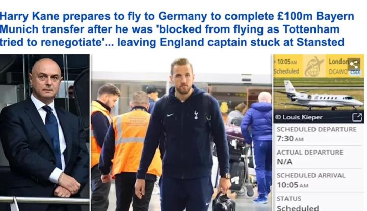 而角度清奇的一路順風《太陽報》頭版的標題則是“凱恩,飛機和高速公路”,英國以此報道了凱恩轉會最后階段的媒體反轉。