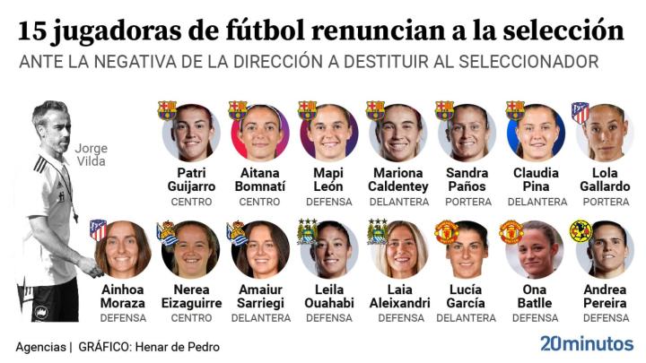 在經歷了令人失望的3屆大賽以后,爆發了舉世間名的15人轟轟烈烈退出國家隊事件。在發布的公開信中,西班牙球員表明了對Vilda和足協的不滿。從后續媒體的報道和采訪中,她們提到的不滿主要集中在: