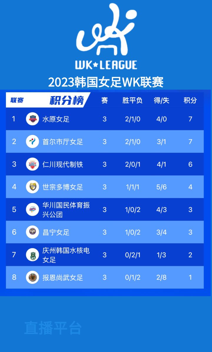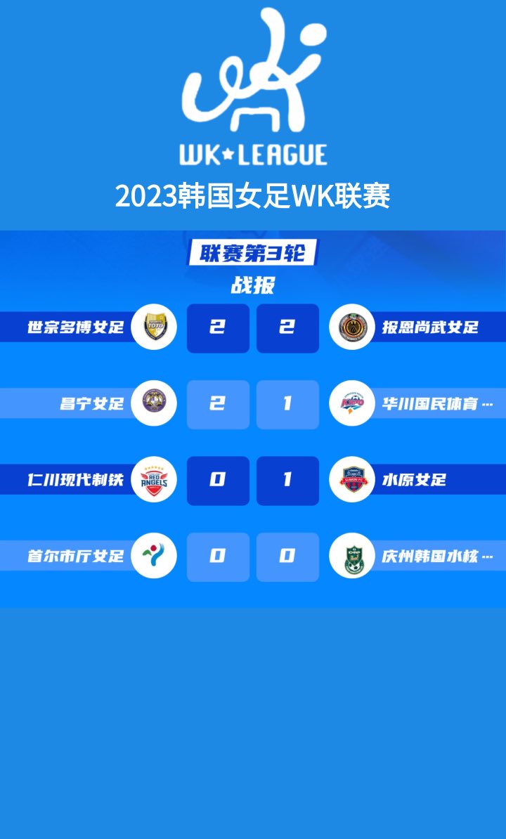 2023韓國WK聯賽第三輪戰罷,韓國水原fc女足1-0戰勝衛冕冠軍仁川現代制鐵,聯賽