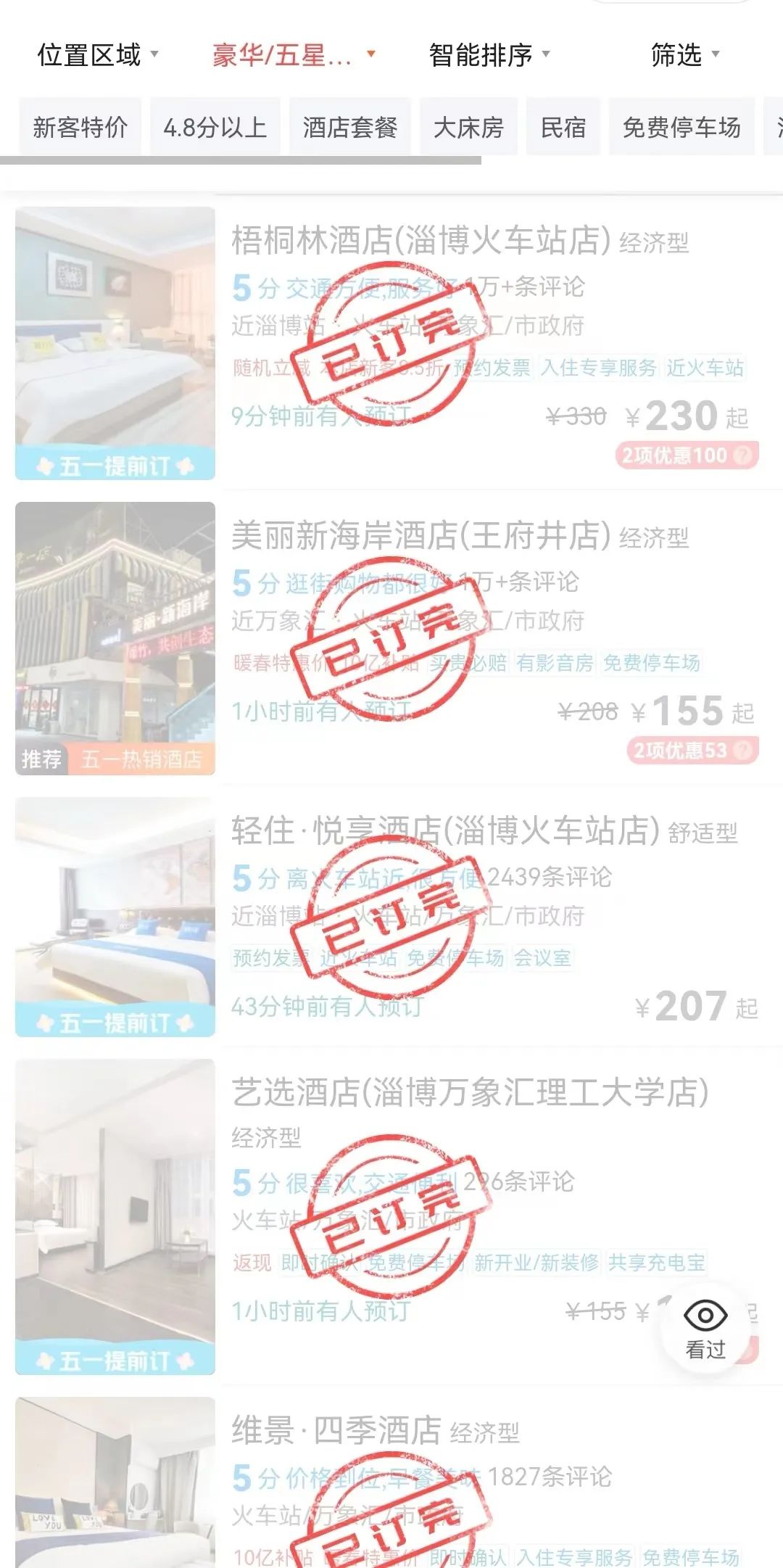 滿房!五一漲價!酒店價毀已訂完!滿屏